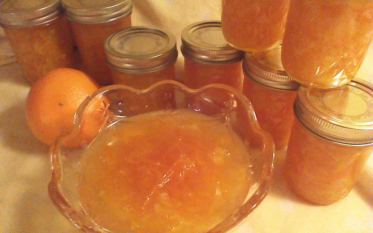 Orange marmalade is a winter delight. When my garden plot freezes and wears a blanket of snow, I begin looking forward to the brightly colored displays of citrus fruits at my local market.