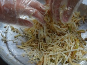 The following recipe comes from the book, Mo Mo and Bo Bo’s Kitchen: a Burmese cookbook with notes on culture and cuisine. The cookbook is a product of the Borderline Women’s Collective, Gallery and Tea Garden (http://borderlinecollective.org/) in Mae Sot, Thailand. Borderline, a collective dedicated to supporting Burmese migrants and refugees on the Thai-Burma border, has a cafe, art gallery and handicraft shop, and also offers classes in art, weaving and cooking. Mo Mo and Bo Bo’s Kitchen is available to students of the Borderline cooking class, but contact them (borderlineshop@yahoo.com) with inquiries about how to purchase a copy or otherwise support their organisation.