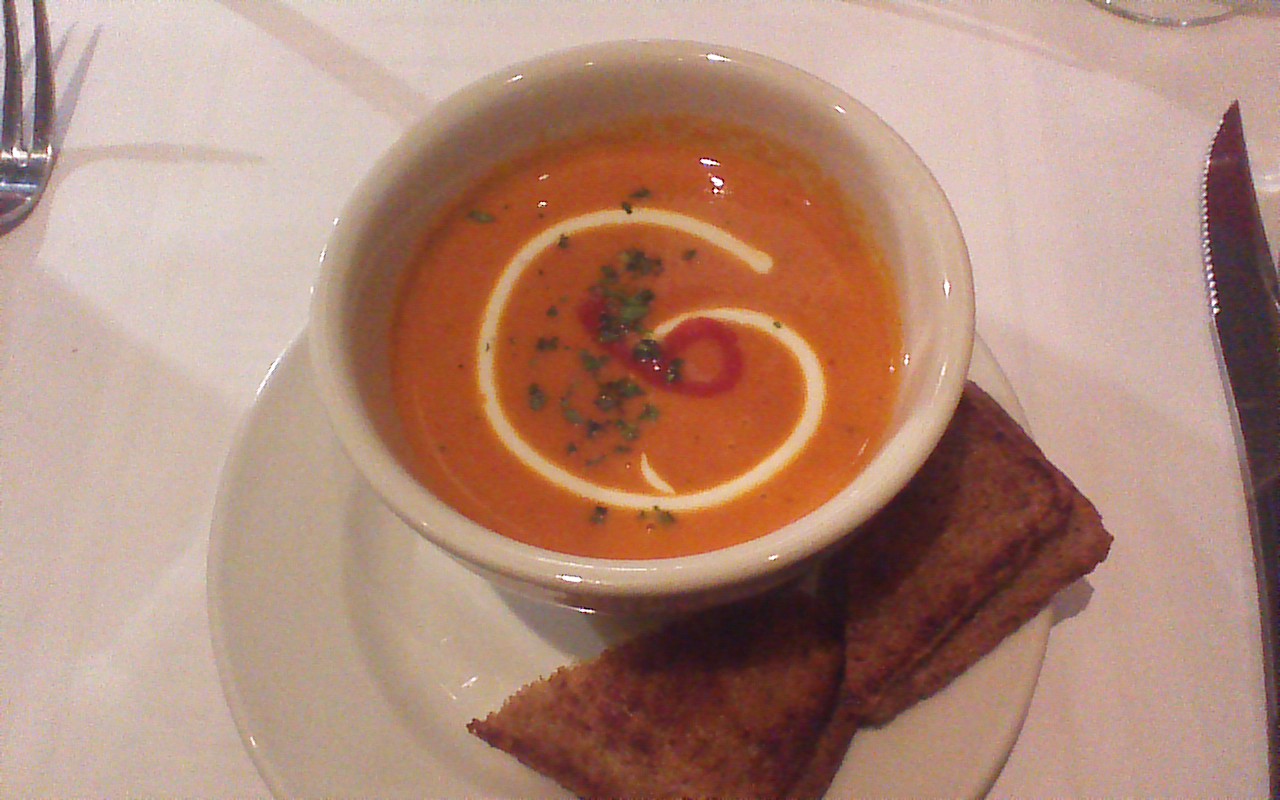 Spicy Tomato and Bleu Cheese Soup with mini 18 month Cheddar Grilled Cheese Sandwiches