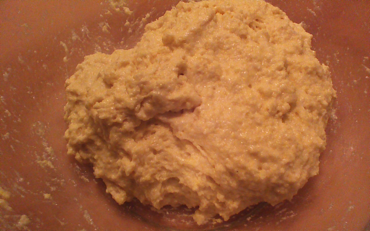 Step 9) Drop rounded tablespoons of Festival batter onto the second greased pan.  Place in oven with plantains once their 10 minute head start has ended.