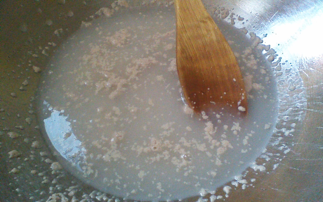 picture392Step 1) Combine yeast, warm water, and sugar in a large bowl.  Stir and let the yeast bloom for 1 or 2 minutes, until the surface looks creamy.