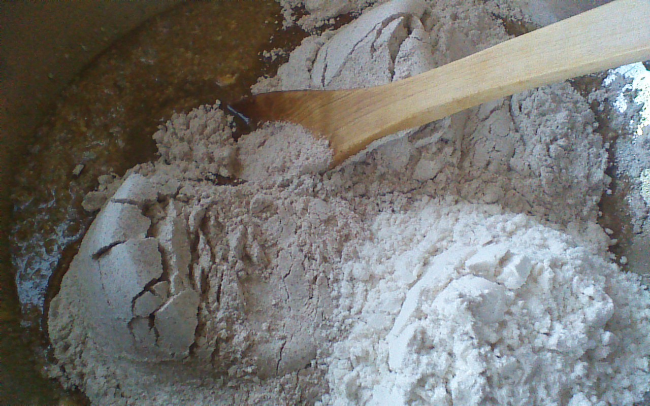 picture393Step 3) Gently stir in all three flours, one cup at a time.