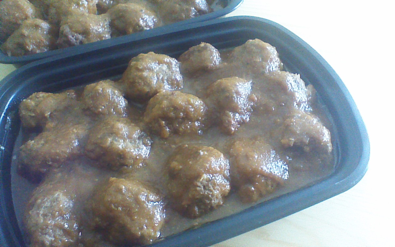 Option 1, you can place a dozen or so in a picture472frying pan at a time, and cook them on the stovetop for approximately 10 minutes over low-medium heat.  You will need to shake the pan handle often to roll the meatballs around and prevent sticking.  This method makes nice, round, “company suitable” meatballs.  The disadvantage is that you need to work in small batches, which will take a while.