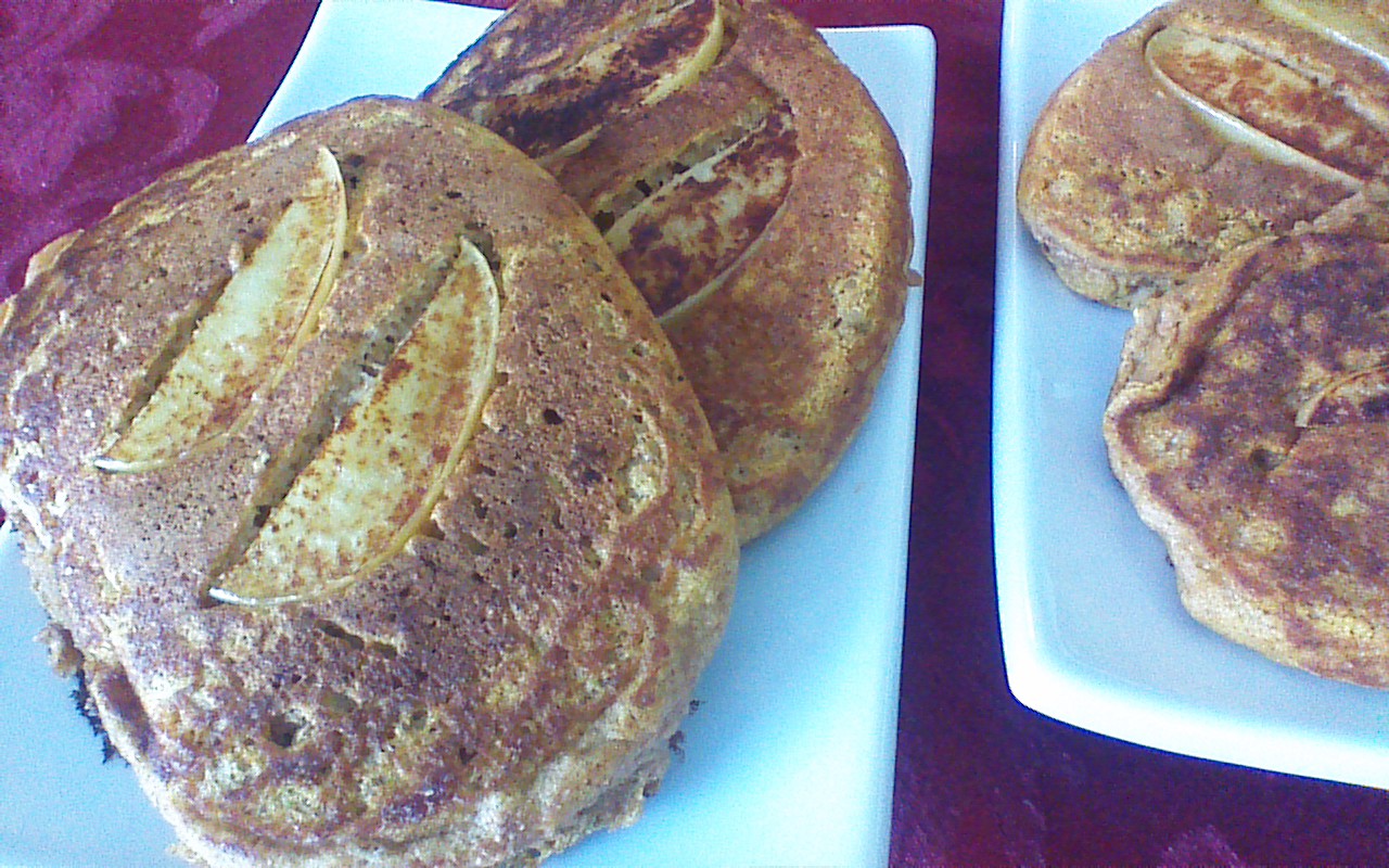 Imagine the flavors of pumpkin, apples, cinnamon, cardamom, and cloves mingled together on your breakfast plate… it’s no wonder that this recipe includes very little sugar, yet tastes sinfully sweet. Even better, this pancake batter is bound together with whole wheat flour. No white flour here, folks. So go ahead and enjoy. You won’t even want syrup on these, they’re that good.
