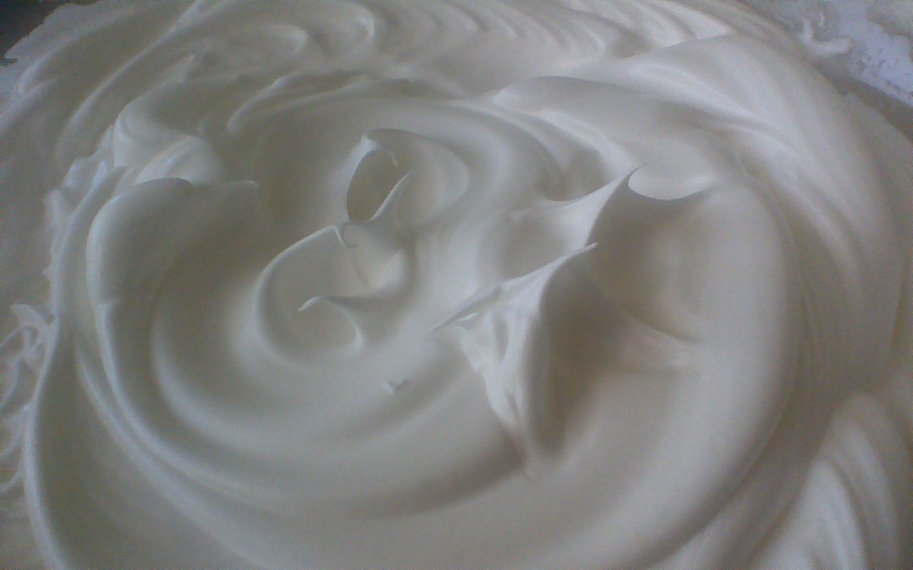 Step 3) Using a scrupulously clean mixing bowl and beaters, beat egg whites and cream of tartar on high speed until soft
