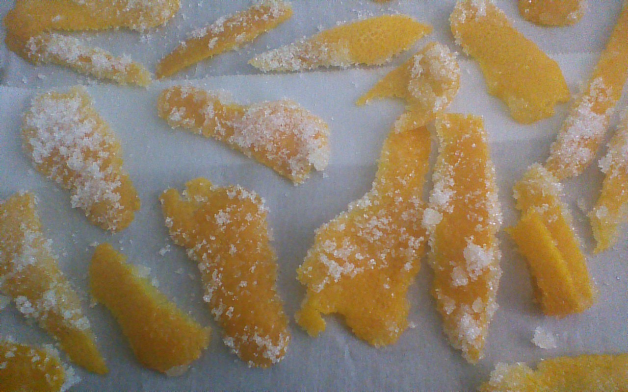 About that candied orange peel… simply peel an orange using a potato peeler, to get