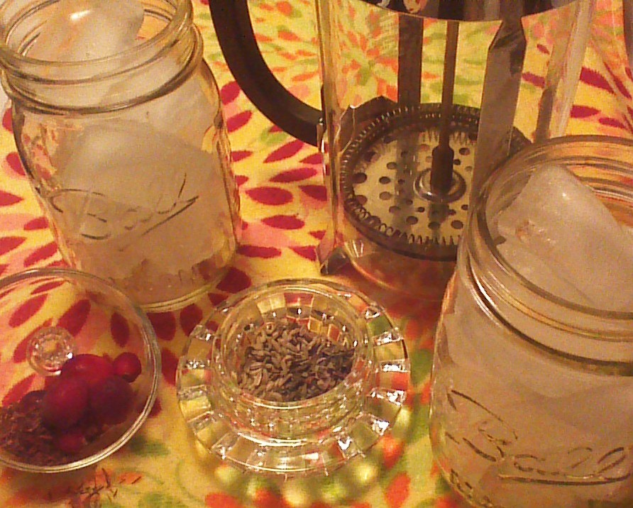 Step 2) Steep peppermint and cranberries in boiling hot water for 10 minutes. I use my French press coffeepot for this. Alternatively, you could tie your peppermint and cranberries in a piece of cheesecloth, and steep in a kettle. You could also just add the peppermint and cranberries “loose” to a pot of boiling water, and then strain through a sieve. So many choices!