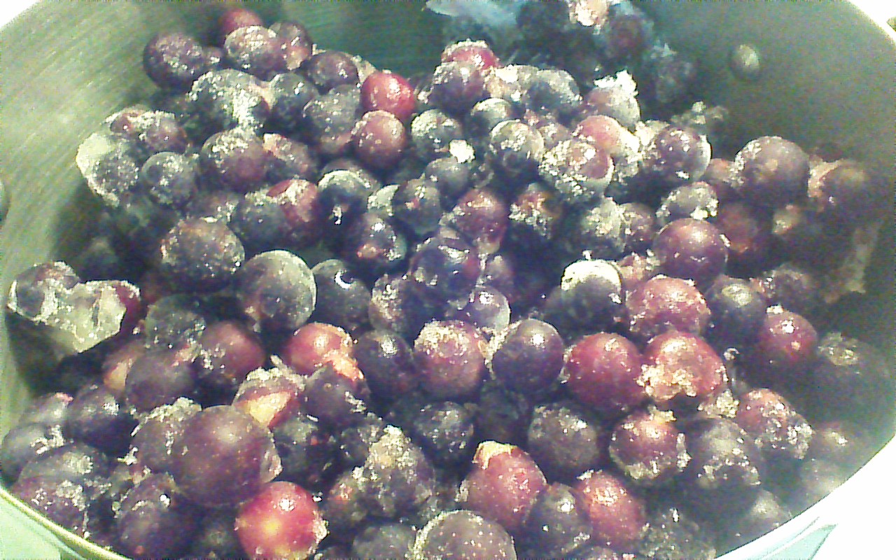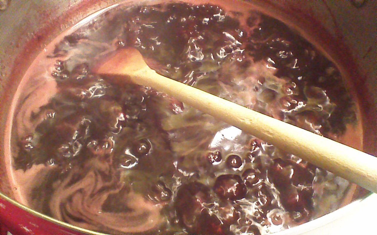 Step 1) Place muscadine grapes in a large pot and cover – just barely – with water.