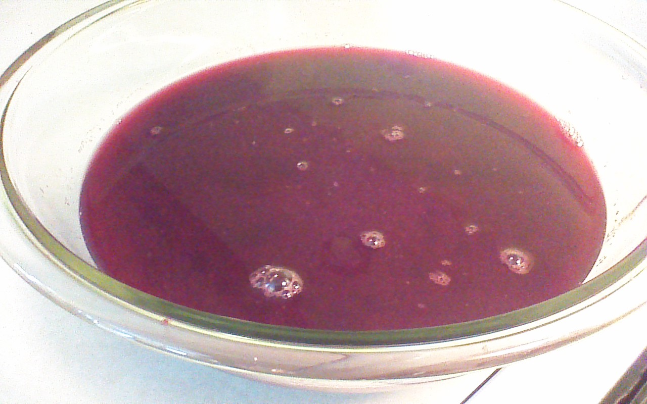 Step 3) Filter juice through a fine sieve into a large bowl. When scooping grape pulp into the sieve, push gently (the back of a soup ladle works well) to extract as much juice as possible. Discard pulp into your compost bin.