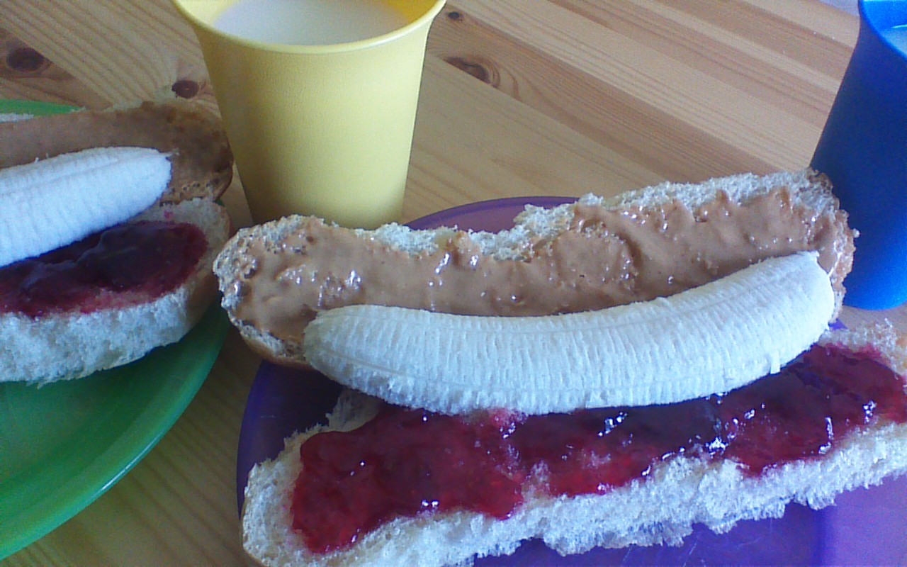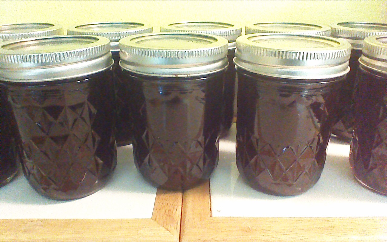 On a recent trip up North, my sister gifted me with a gallon bag of frozen muscadines. I retrieved them from the freezer last night, and turned those delicious purple grapes into ten jars of jelly. The pint size people in my life gave the “monkey sandwiches” shown above (muscadine jelly, peanut butter, and a halved banana in a fresh bun) a hearty seal of approval. If you prefer to enjoy grape jelly right out of the jar, well,