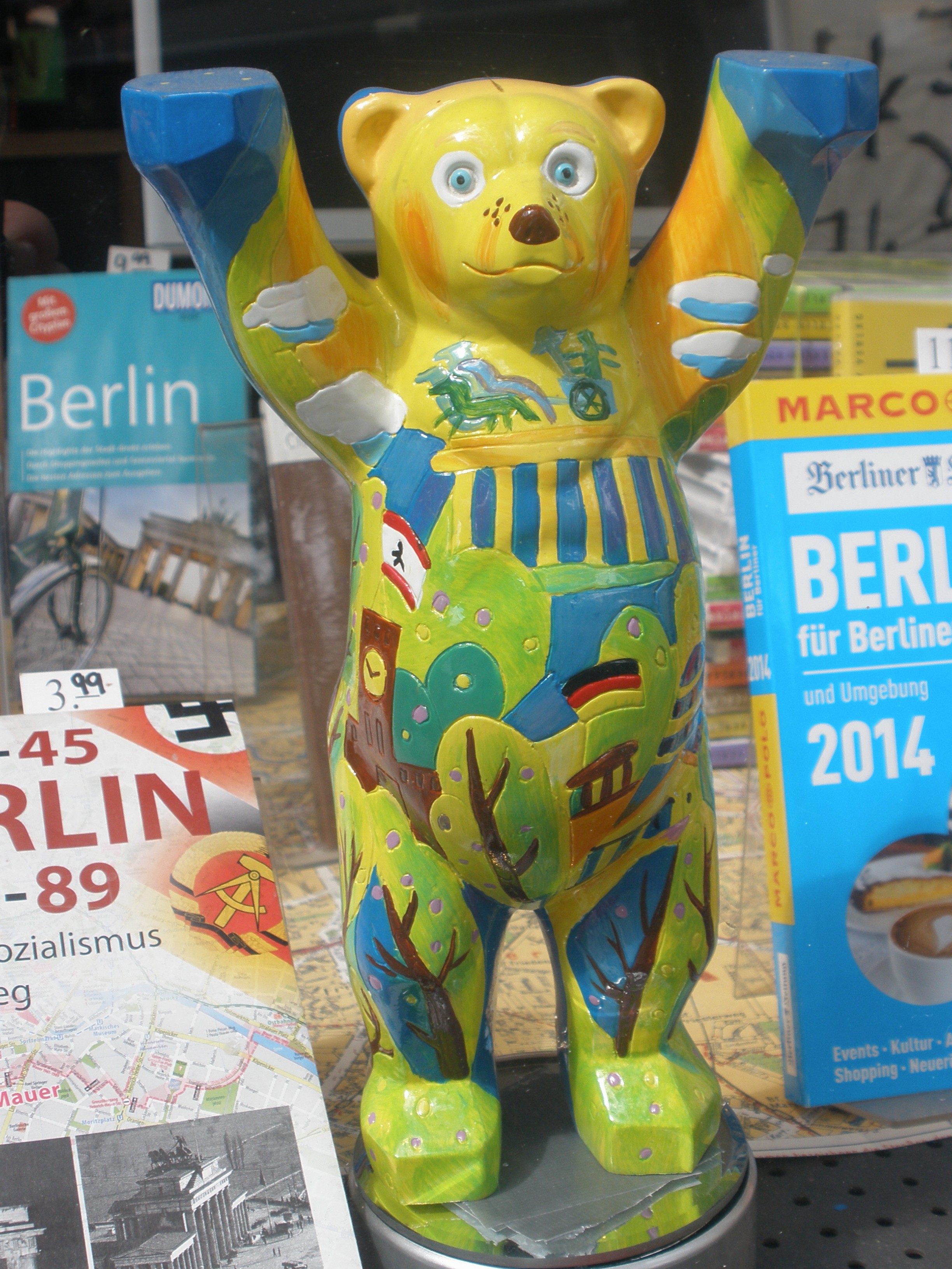 Bears abound in Berlin! Big bears, little bears, solid colored and intricately painted sculptures of bears can be found greeting pedestrians on sidewalks and in storefronts all over the city. Officially, they are called United Buddy Bears, and serve as fiberglass goodwill ambassadors, representing peace and tolerance. I dare even the most stoic of pedestrians to avoid smiling at one of these darling bears.