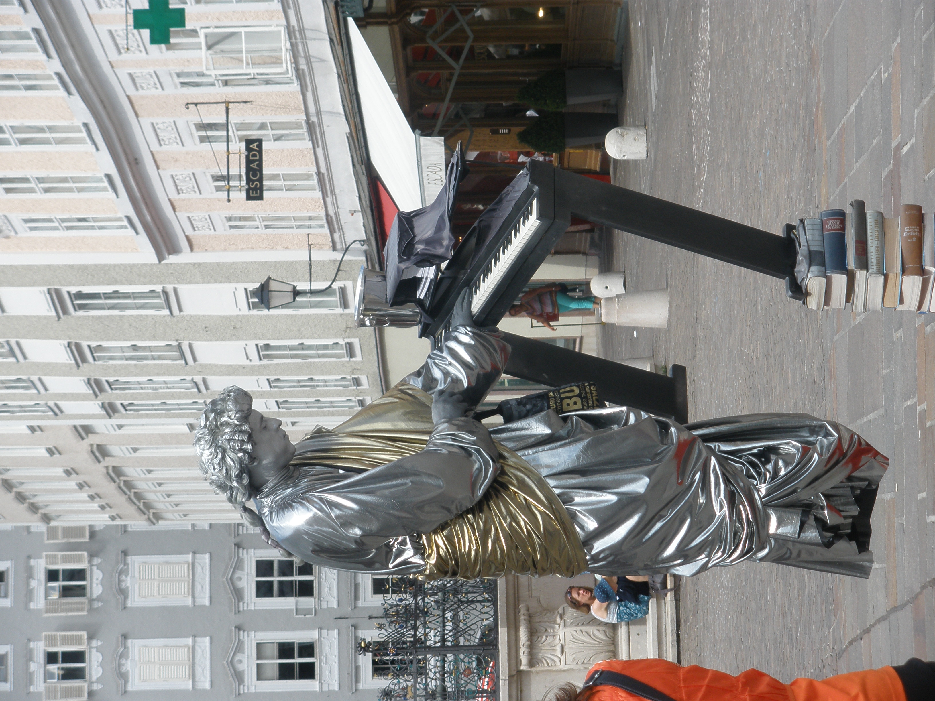 Salzburg, Austria takes being the birthplace of composer Wolfgang Amadeus Mozart pretty darn seriously, if curiosities such as Mozart impersonators covered in metallic paint can be considered serious! A visitor would be hard pressed to walk more than a block or two in historic Salzburg without seeing some sort of tribute to its classical composer hometown hero.
