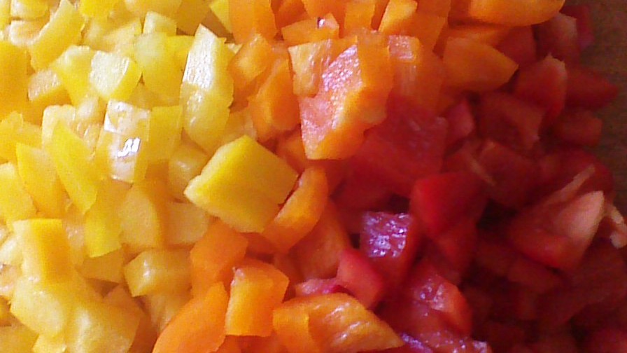 Step 2) Dice your pineapple, mango, onion, and red pepper into bite size pieces. Combine in a large bowl.