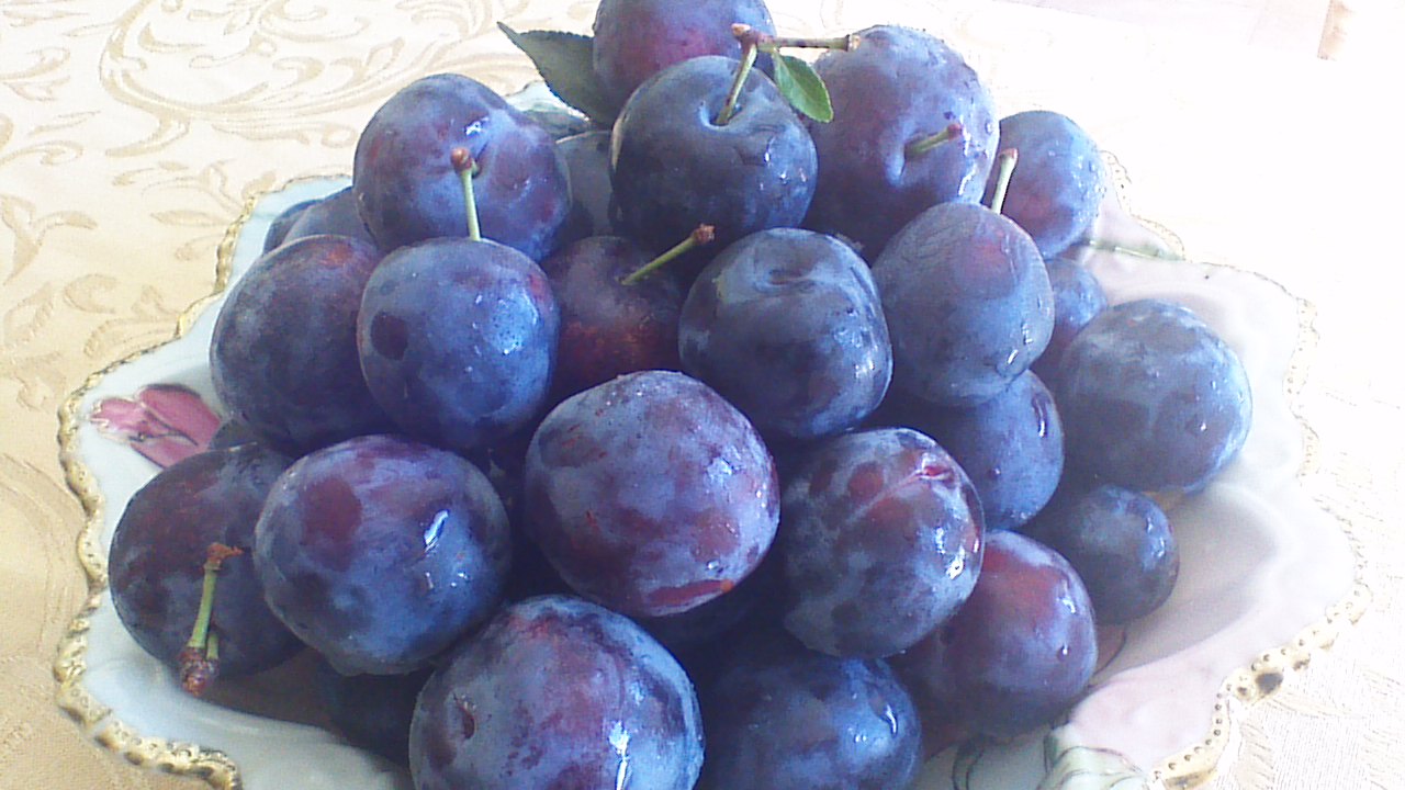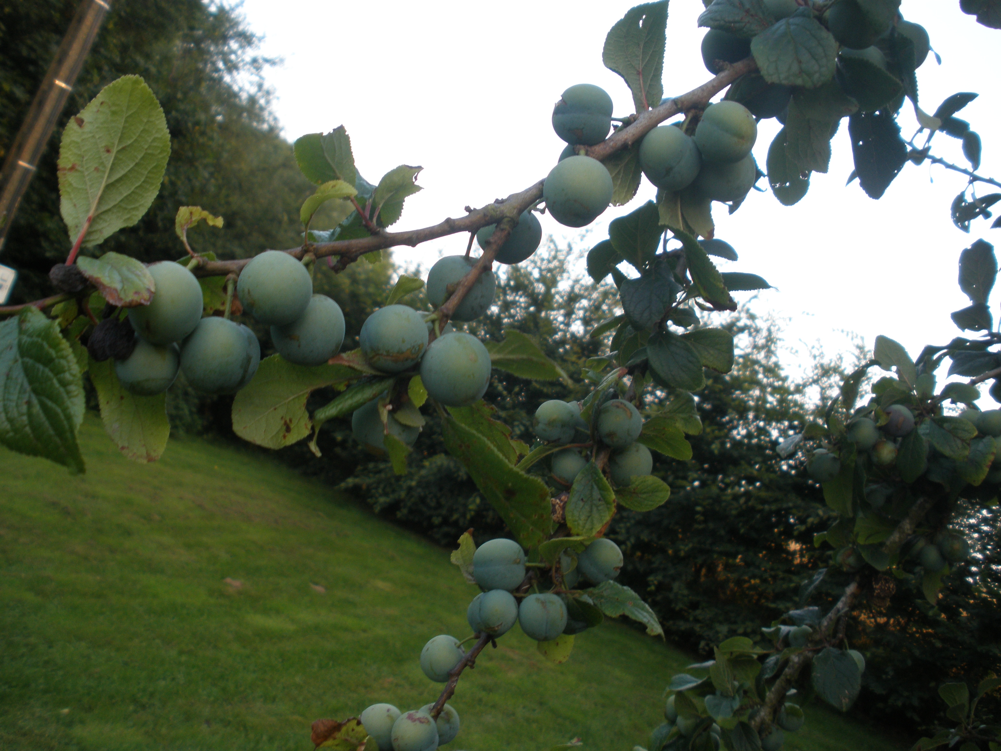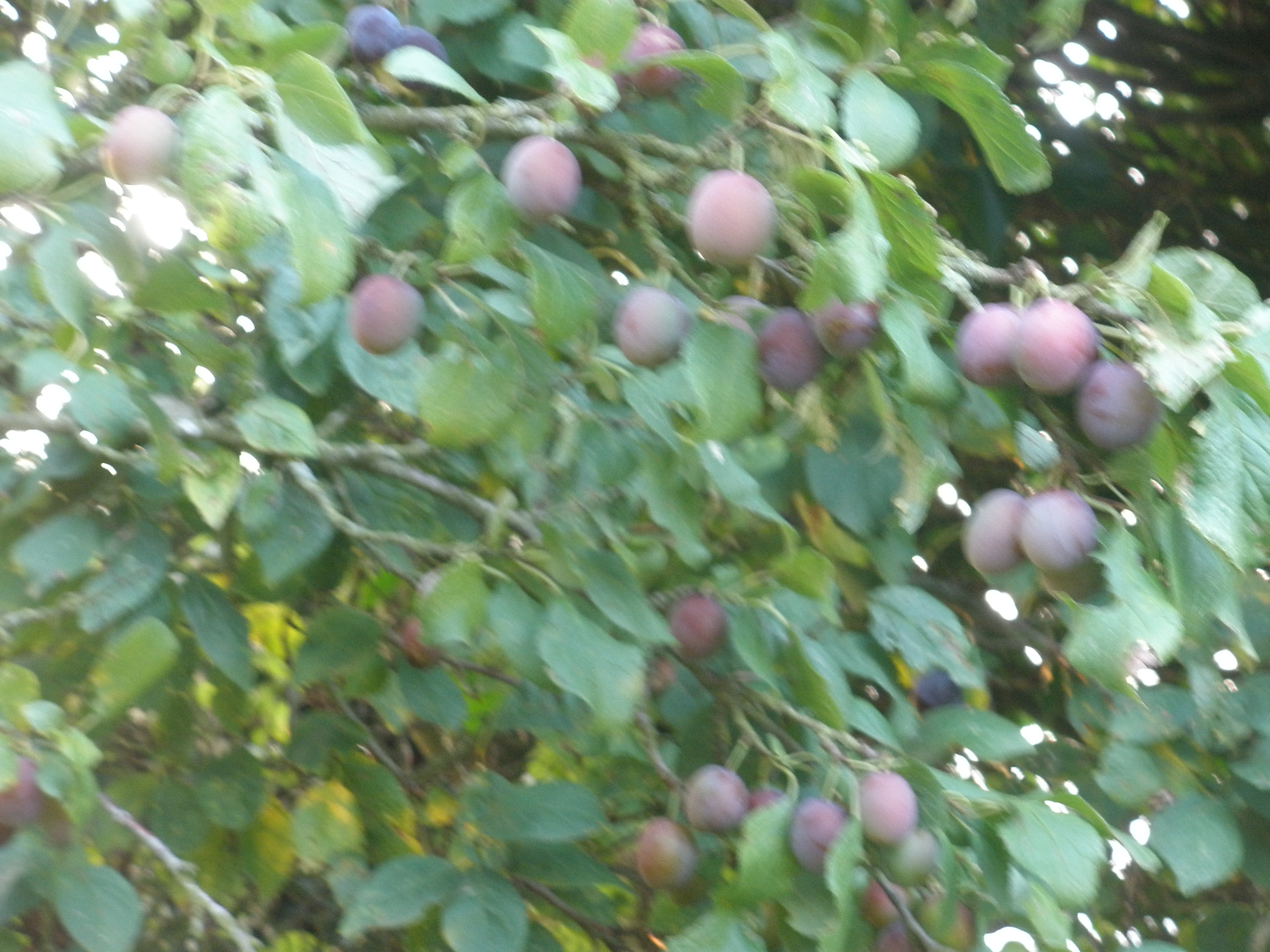 The green plums in your picture are a little known delicacy, a very aromatic variety called Green Gage that lacks the bitter sourness of some plums. They are prized for making jams and compotes in southern Germany and Bohemia, whence i knew them as s. German: Ringlo or CZ: Ryngle.