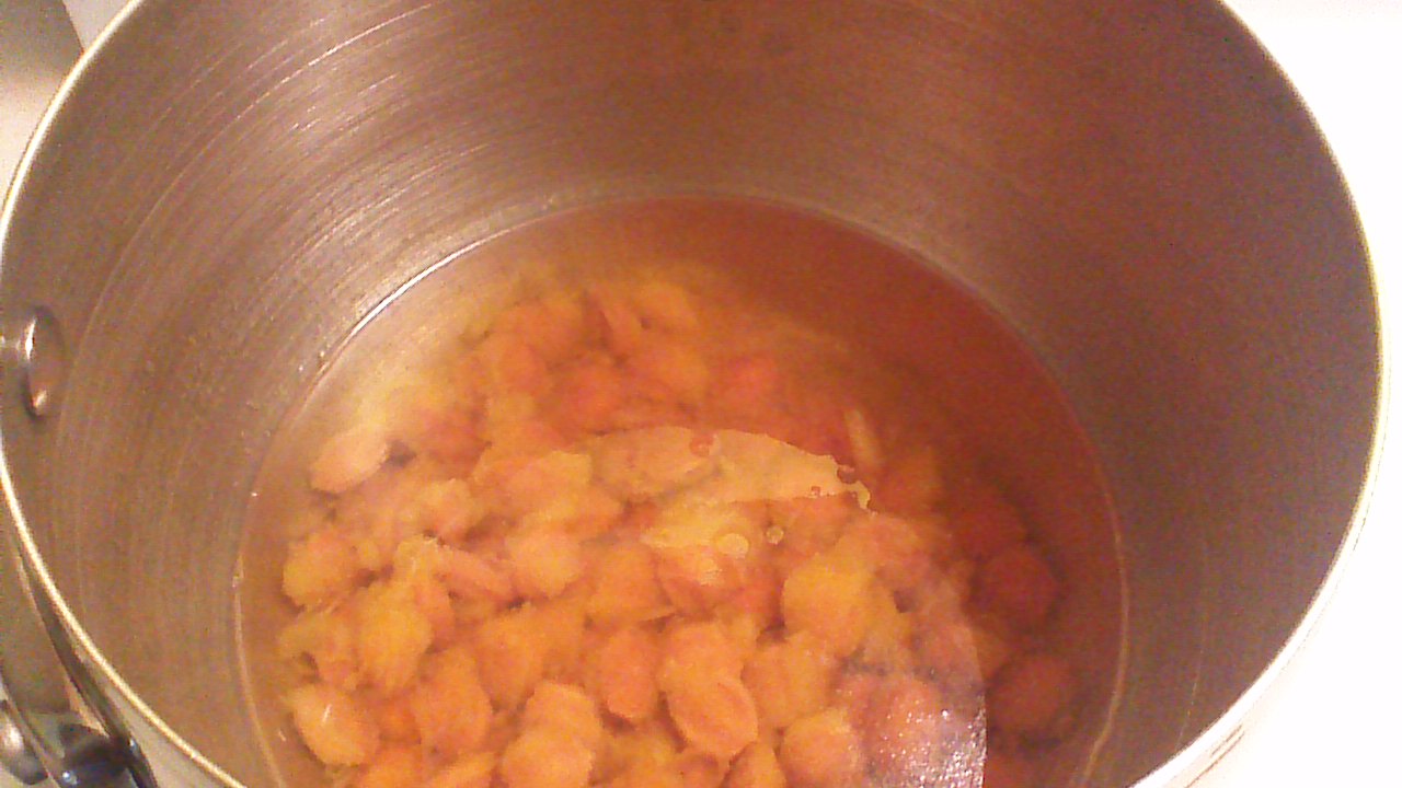 Step 3) Place a strainer over a second pot, and carefully pour the stones and liquid into the strainer. Keep the liquid and any little bits of fruit that passes through the strainer! Toss the stones into your compost bin.