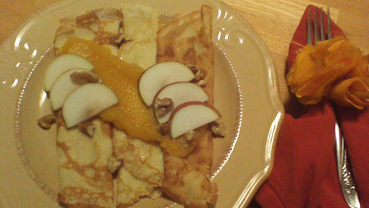 Today we are making crepes with pumpkin applesauce. This impressive-looking dish is seasonal and is quite simple to prepare (remember, toppings and garnishes make even flawed crepes look fabulous!). Your kitchen will smell wonderful and your dining companions will be impressed. Let’s get started!