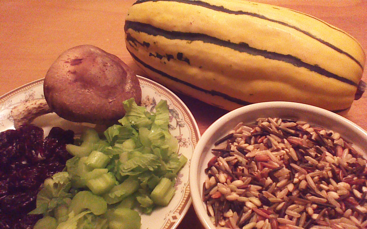 A one-cup serving of delicata squash contains more than a full day’s worth of beta carotene, is high in fiber and vitamin C, and offers up a wealth of antioxidants… all for only 40 calories.  This hearty, sweet yellow squash serves as the perfect base for a satisfying filling of tart cherries, earthy shiitake mushrooms, and crunchy celery in a wild rice blend.  Enjoy!