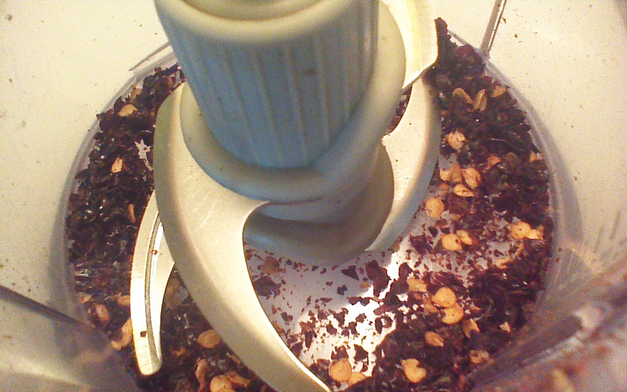 Step 1) If your Ancho chile has a woody stem, remove the stem. Then, taste one of the seeds. Every pepper is unique! If the seed is too hot for your liking, remove the seeds from the chile. If the seeds taste agreeable to you, use the whole chile. With or without seeds, grind up the chile in a small blender or food processor.