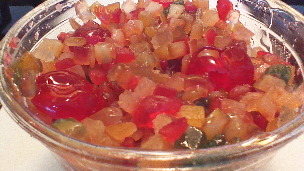 Every December, food markets offer towering displays of fruitcake ingredients, including container after container of brightly colored preserved fruit. The displays are pretty… but do you know anyone who actually eats fruitcake? Neither do I.