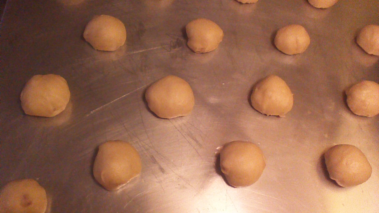 Step 6) After 1 hour, cut golfball-sized pieces of dough and shape them into smooth balls. Allow to rise on greased baking sheets, 2 inches apart, for 30 minutes.