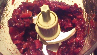 Add half of the pitted cherries to a large pot. Coarsely chop the other half of the cherries in a blender or food processor, and add to the pot with the whole cherries.
