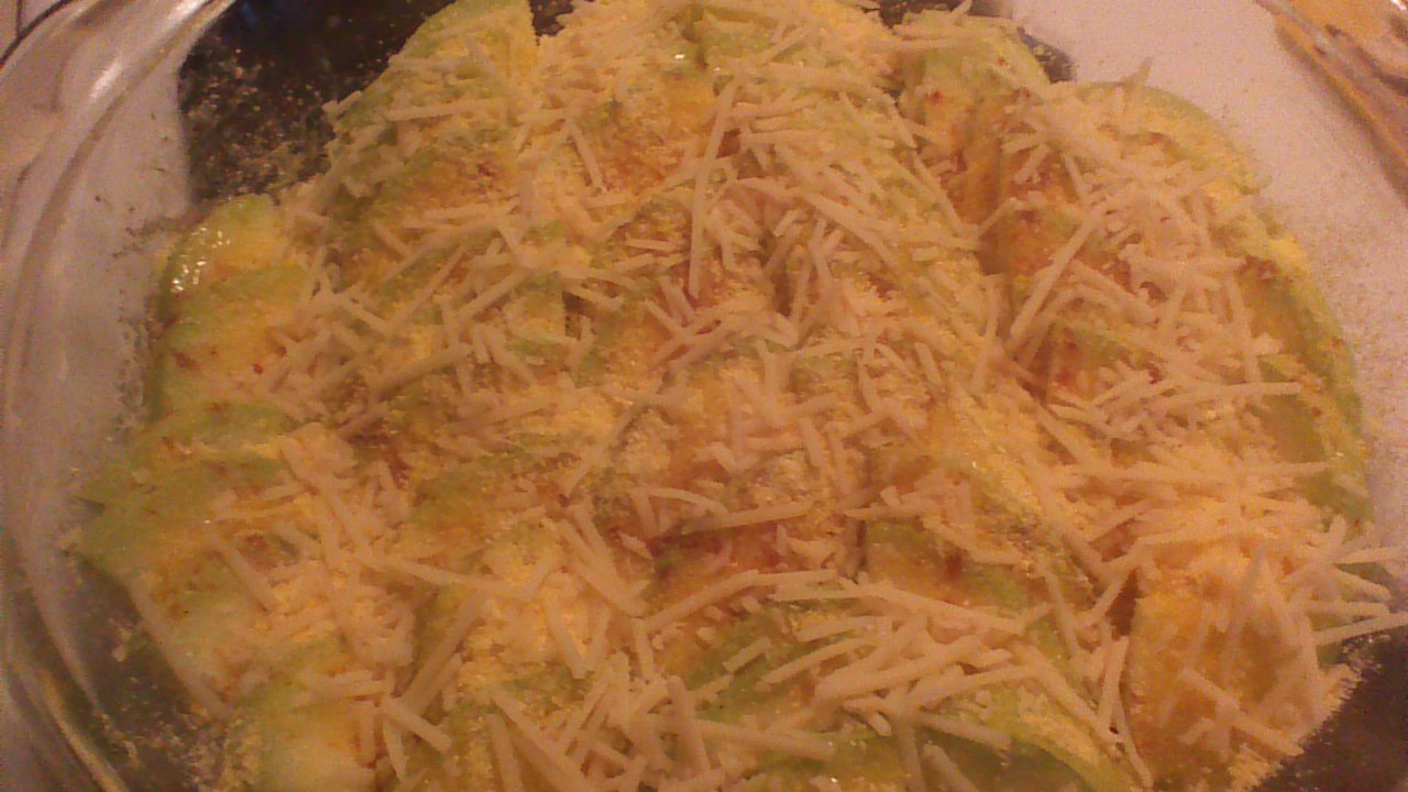 Step 1) Grease a baking dish (I used a pie dish) with the wrapper from a stick of butter. Arrange sliced Opo in baking dish.