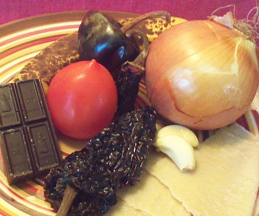 WIN_20150423_182747Mole (pronounced Moh-lay) is a “sauce” like Venus de Milo is just another statue. There are literally thousands of varieties of mole, most of which prominently feature chili peppers and branch out to include countless combinations of additional ingredients. Mole has been central to Mexican cooking since ancient times, and is considered by many to be the most widely recognized “Mexican food” in the world.