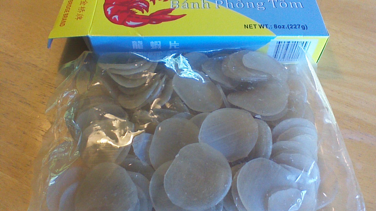 When you open the box, the contents might surprise you. Uncooked prawn chips look like, well, little pieces of plastic: