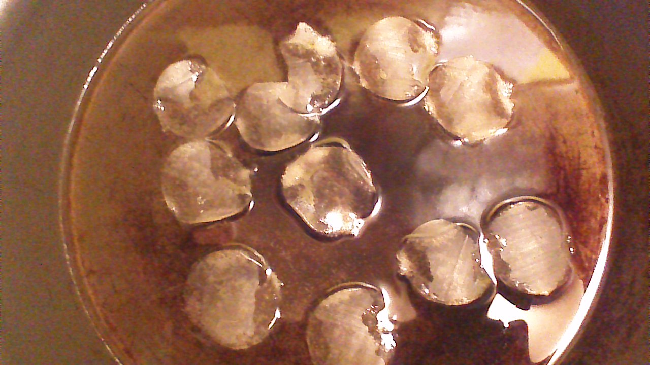 Don’t be alarmed. Simply pour your favorite cooking oil into a frying pan, so that the oil is about 1/2 inch deep. Coconut oil with a few drops of sesame oil added for flavor works well. Add the chips, a few at a time, to very hot oil: