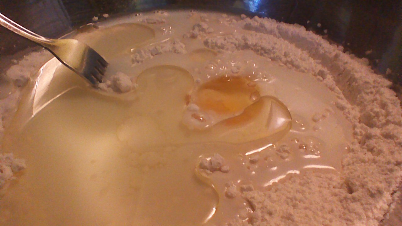 Step 3) Combine egg, milk, and oil in a separate bowl and mix well.