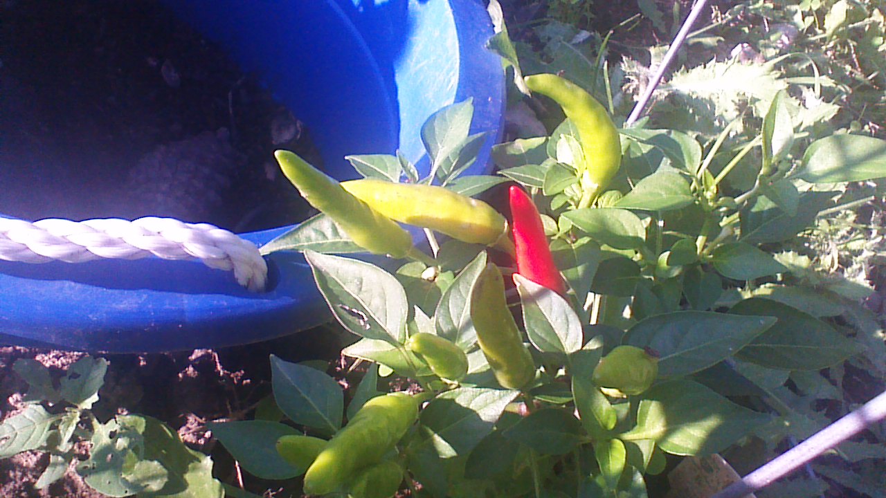 The first of the hot peppers are turning red!