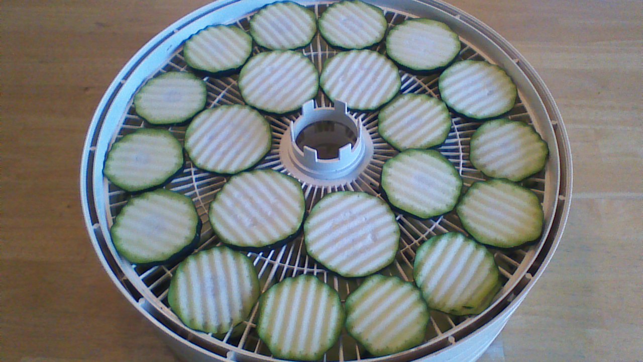 Step 2) Place zucchini slices on food dehydrator trays. If you don’t have a food