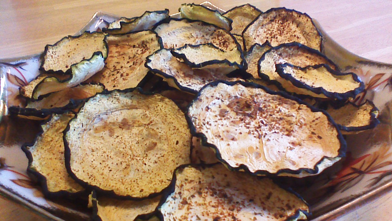 Step 3) Use a pastry brush or napkin to lightly coat zucchini slices with coconut oil (or olive oil). Sprinkle zucchini slices with salt, and dehydrate for 12 hours or until crispy. Store in an airtight container.