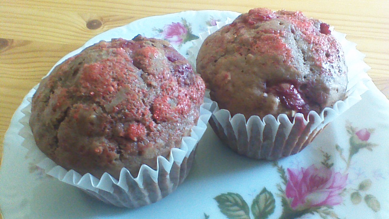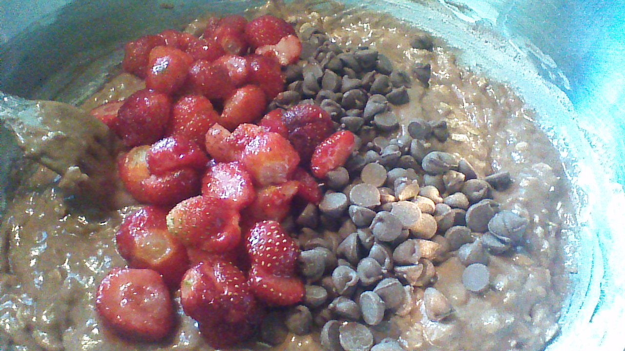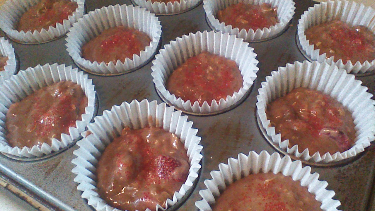 Chocolate and strawberries… what’s not to love? These muffins take 5 minutes to prep and 25 minutes to bake. The aromas which will waft from your oven will be amazing enough to convince even a teenager to climb out of bed and get ready for school. Or, bake them the night before and share a little lunchbox love. Here we go!