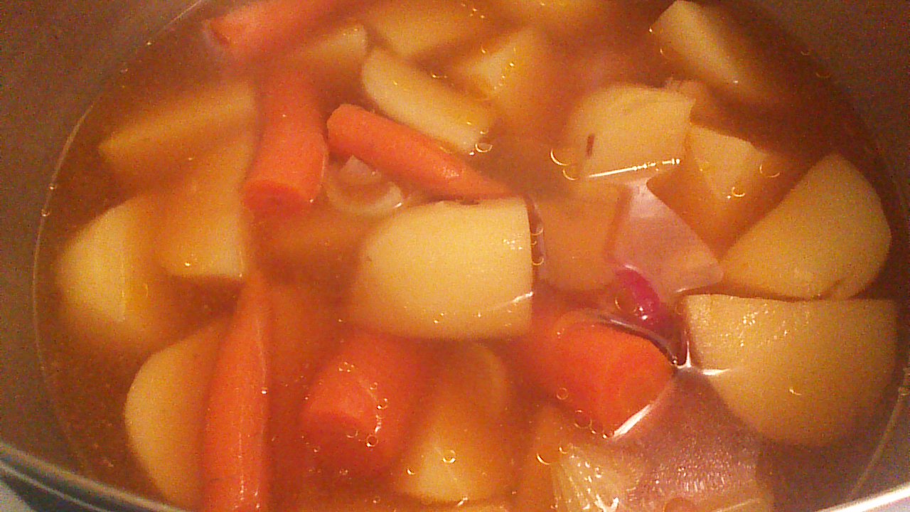 Bring stock, potatoes, carrot, and onion to a boil in a large pot. Reduce heat and simmer, covered, until potatoes and carrots are soft (about 20 minutes). Remove from heat and puree with an immersion blender. Add pumpkin, coconut milk, curry powder, and salt. Puree again with an immersion blender. Sprinkle with roasted pumpkin seeds before serving.