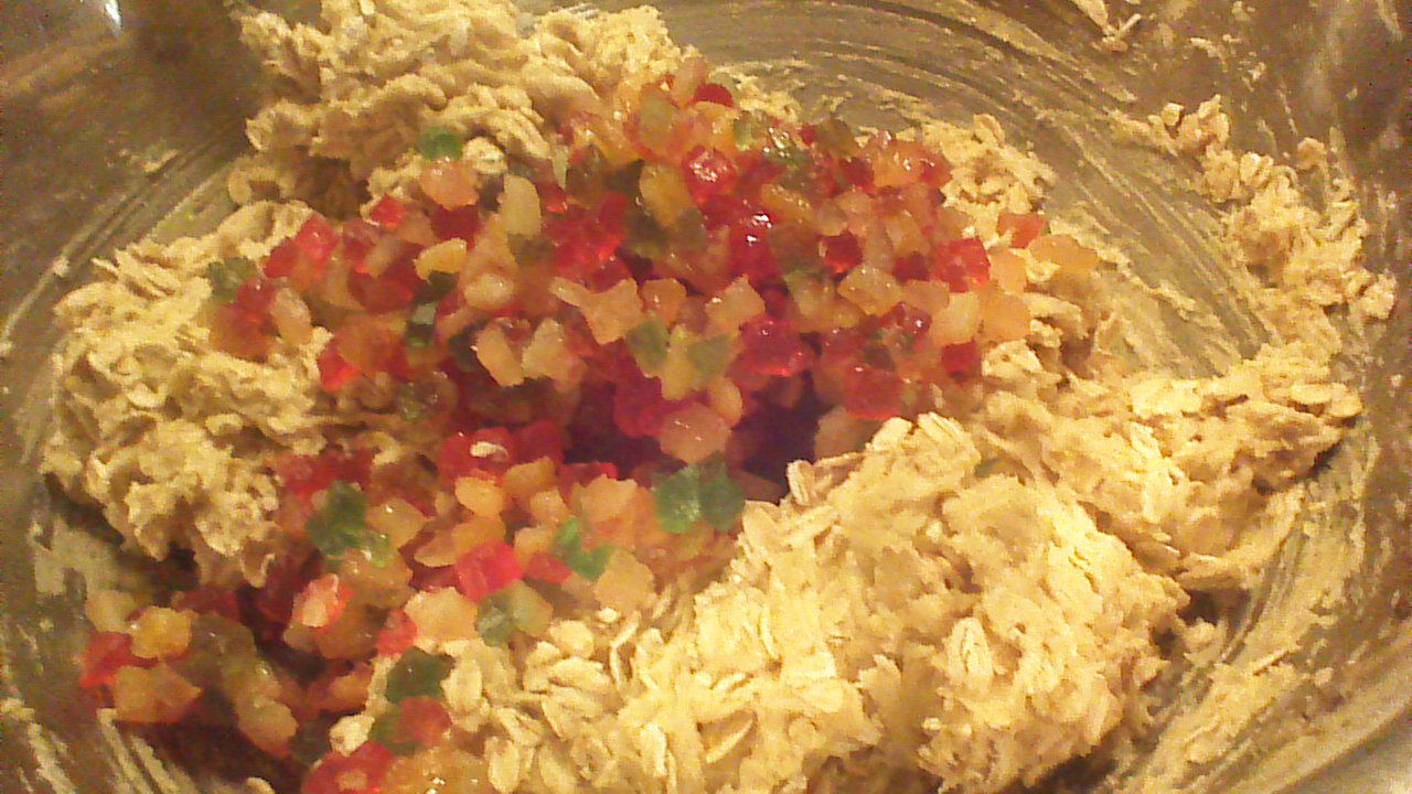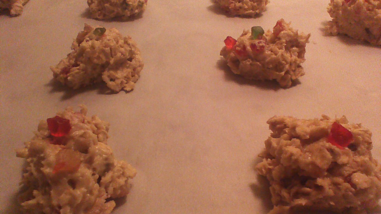 Step 3) Gently fold in candied fruit. Drop cookie dough by rounded teaspoons onto baking sheets lined with parchment paper.