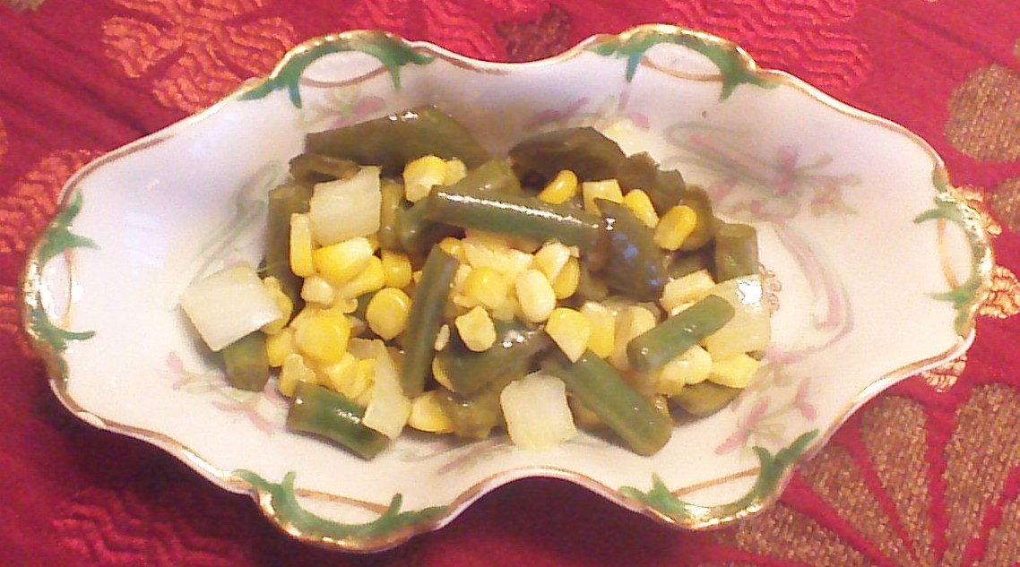 I have no idea where the name originated – catchy though, isn’t it? There are many, many variations on chow chow, which is basically a corn chutney made from the bits and scraps of whatever is left in a garden before the first freeze, preserved in a sweet brine. This batch of chow chow is made from corn, Poblano peppers, onion, and green beans because that’s what I had on hand. If you have green tomatoes, asparagus, or cauliflower to use, those vegetables also work well. As long as your vegetables “add up” to 18 cups, you can follow the brine recipe as shown below. Be creative with your combinations of corn and other veggies, and have fun!