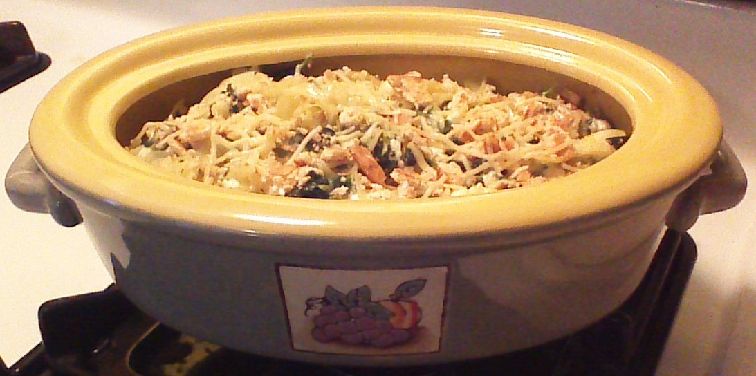 If you don’t have a friend like Pilar, you don’t know what you’re missing! Pilar is the type of girlfriend with whom you can have a serious, soul-searching conversation one day, and know she’ll never break a confidence. The very next day, you might find Pilar wearing a tiara while mixing blue cocktails never-before-enjoyed by anyone over the age of 21 (and somehow, she won’t look ridiculous). Pilar keeps her friends guessing – and laughing – and isn’t that what makes life fun? This is Pilar’s Spinach Noodle Casserole recipe. Like Pilar, it is fabulous. Enjoy!