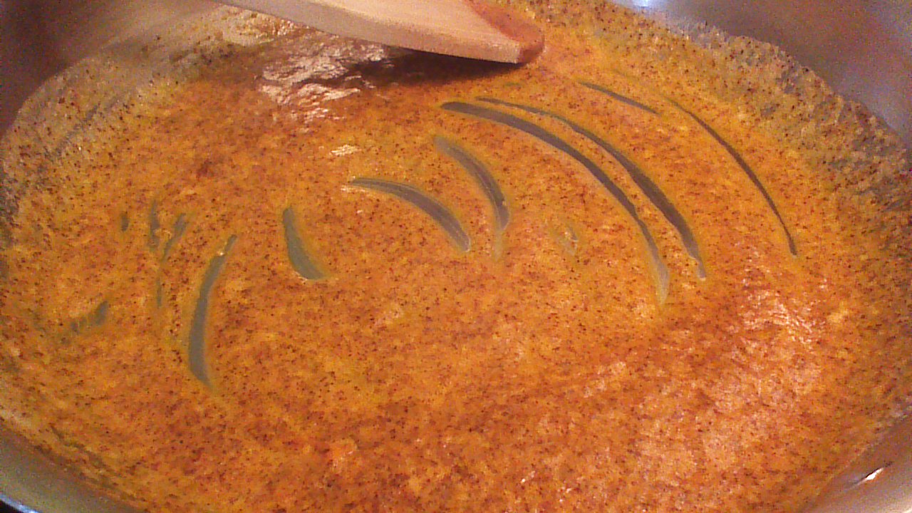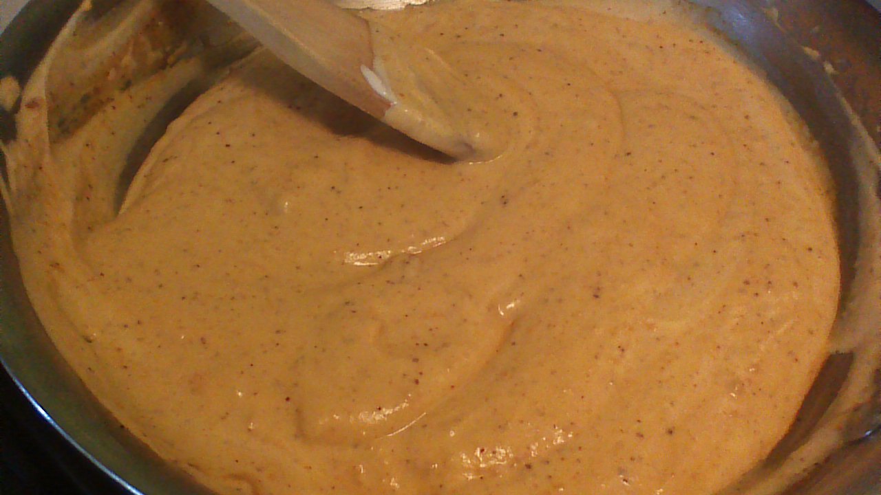 WIN_20160123_130506Step 2) Melt butter in a medium saucepan. Add flour and chili powder. Stir constantly over medium heat for three minutes, to form a roux-style base for your top sauce. Reduce heat to low; whisk in milk and salt. Stir in sour cream. Remove from heat. This is your top sauce.