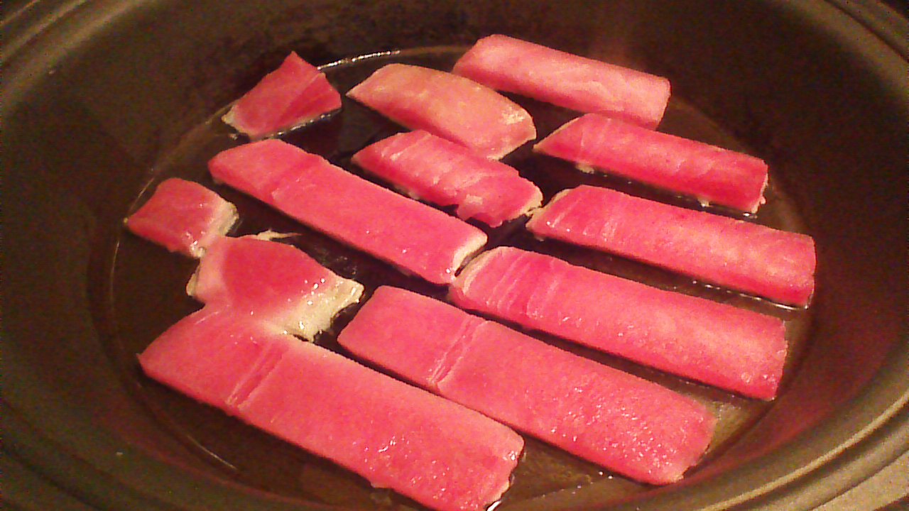 Step 3) Heat coconut oil in a skillet over medium heat. Make sure bottom of skillet is evenly coated with oil. Add Ahi tuna slices and sear 15 – 30 seconds on each side (if you like the middle pink) or up to 1 minute on each side (if you like the tuna cooked through).