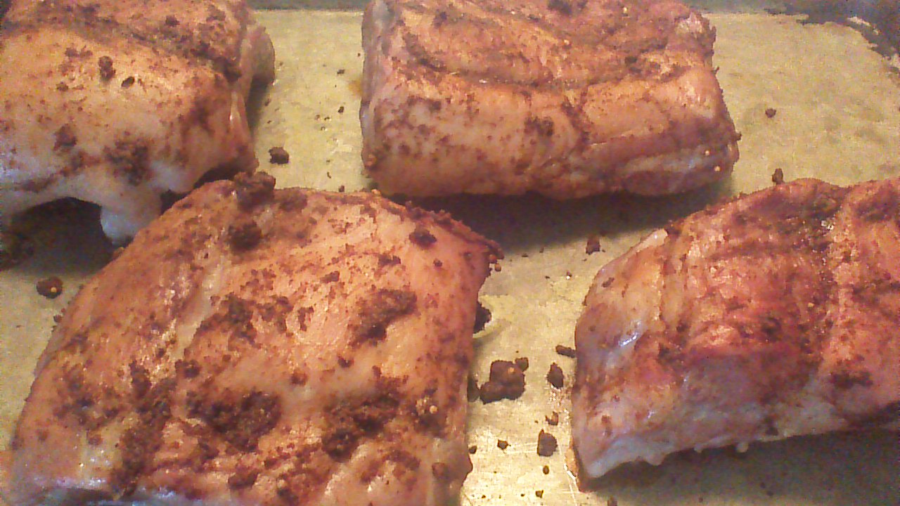 Step 6) Place ribs in a preheated 300 degree oven and roast for 1 hour. While the ribs are roasting, combine the ingredients for the “almost-dry rub” and mix into a paste.