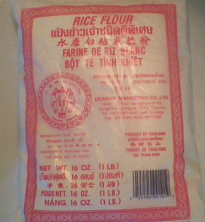 Step 1) Combine rice flour, boiling water, salt and sugar in a medium size, microwave safe bowl. Stir together with a fork.