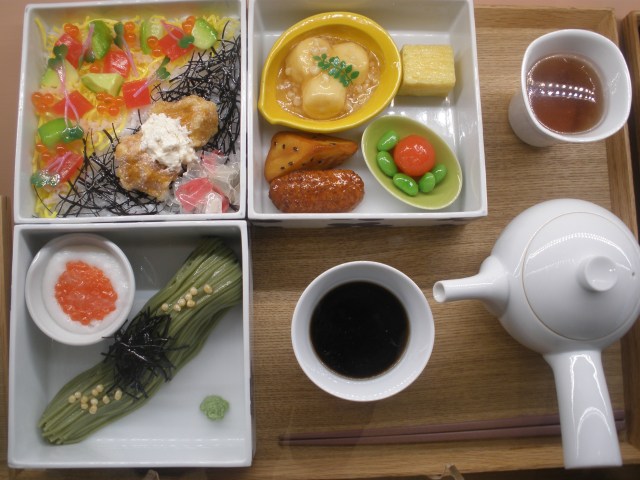 Plastic food is surprisingly expensive… really expensive. A plastic nigiri sushi keychain costs around $10 (USD equivalent), and a plastic display of a full dinner platter can cost… wait for it… over $200.