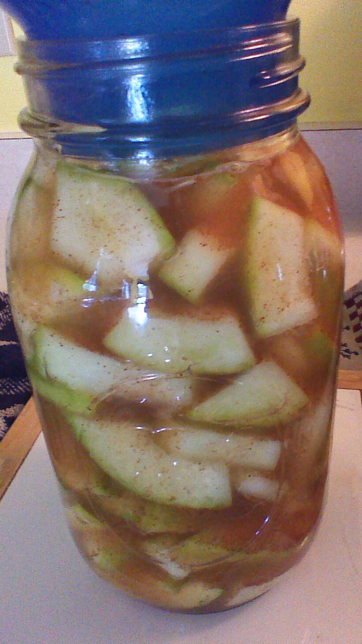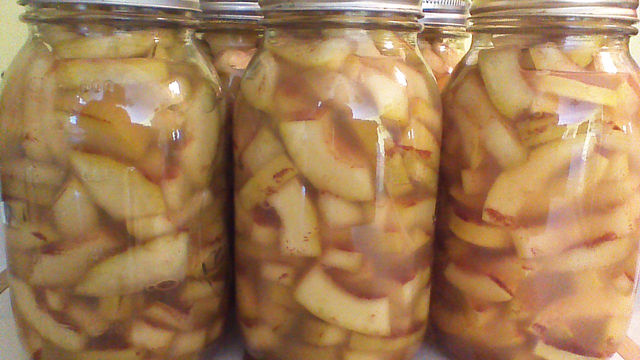 WIN_20160724_120815Option 2) To can your zucchini apples, ladle them hot into sterilized canning jars. Leave 1/2 inch of head space. Seal with lids and bands, and process in a boiling water bath for 15 minutes.