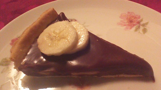 This dessert falls into my favorite category… the “looks complicated, but is really easy to make” category. In just a few minutes time, you can prepare a decadent tart that looks elegant enough to serve at the end of a fancy dinner. Frozen Chocolate Banana Tart is quite rich, and will serve a few more people than a similarly sized fruit pie. A modest wedge of this tart, perhaps garnished with fresh whipped cream and served with coffee, will make a perfect finish for an evening with company. If you prefer to enjoy this Frozen Chocolate Banana Tart in your PJs on a Tuesday night, I won’t judge!