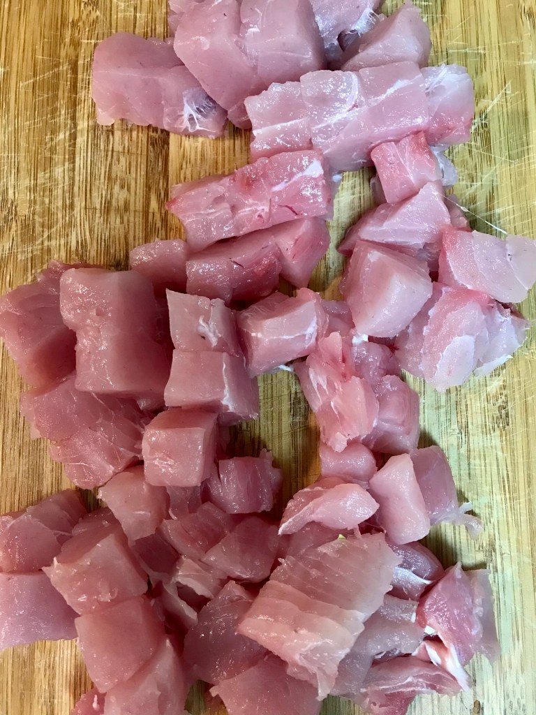 1 pound of fresh, filleted amberjack, cut into 1 inch cubes