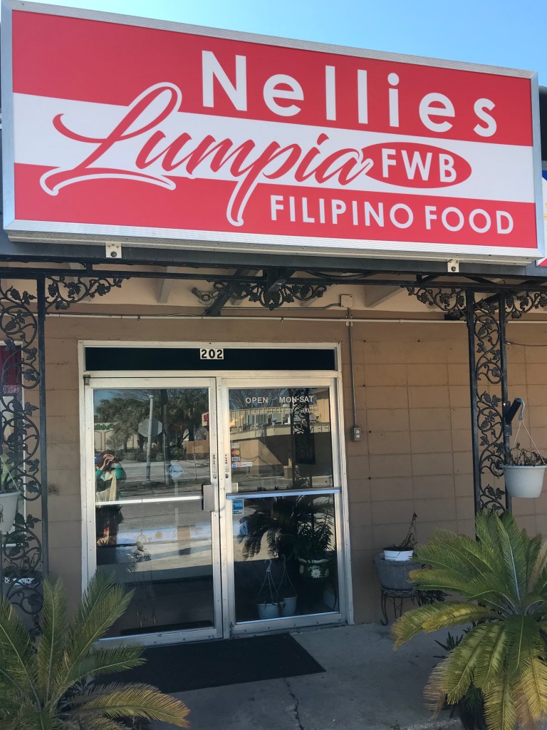 After spending a lovely but blustery morning fishing from Okaloosa Pier, we came upon Nellie’s Lumpia in Fort Walton Beach. Self-described as an “unfussy strip-mall joint offering a buffet of Filipino staples, including lumpia & chicken adobo,” Nellie’s is reasonably priced and absolutely delicious. What’s not to love about piping hot, savory deep fried spring rolls filled with pork and cheese (below left) or beef and veggies (below right), served with a sweet and tangy chili dipping sauce? Yum!