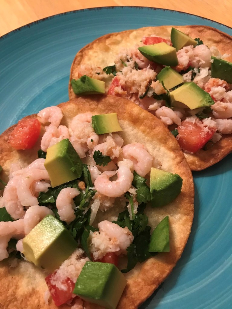 Step 3) Divide ceviche mixture between the tostada shells and top with diced avocado. Serve immediately.