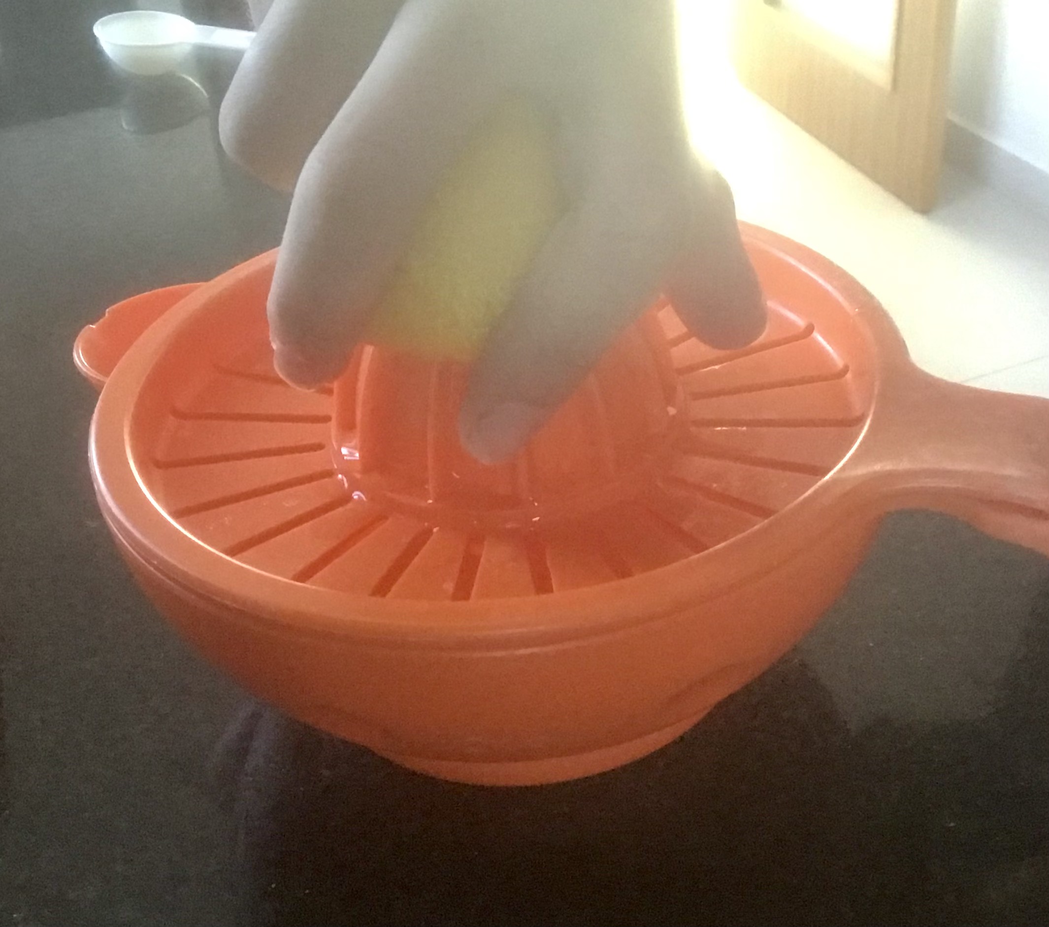 Juice 7 of the 8 halves of lemon. Save the last have for later.