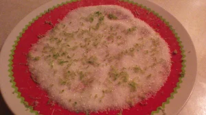 Step 1) Sprinkle sugar, salt, and grated lime zest on a small salad plate. Pour a few tablespoons of water onto another, separate salad plate.